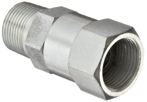 This Dixon SV Series in-line heavy duty, free-turning swivel is made of steel and connects a male NPT threaded connection to a female NPT threaded connection. It has female National Pipe Taper (NPT) threads on one end to connect to a male NPT threaded connection, male NPT threads on the other end to connect to female NPT threaded connections to create a tighter seal than straight threads, and a free-turning swivel to reduce hose kinking. This fitting is made of steel for better weldability and greater rust resistance than wrought iron. It is rated to a working pressure of 250 pounds per square inch (PSI) (17.01 bar) at 70 degrees F with a minimum pressure of 35 psi. This air hose fitting is suitable only for air service applications such as air drills and pavement breakers.