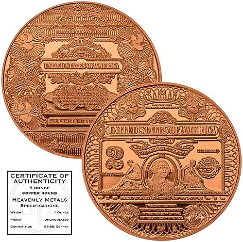 Experience a touch of American history with this $2 Washington Note Replica coin, minted from .999 pure copper. This piece reproduces the iconic design of the $2 bill, which holds an esteemed place in the U.S. currency timeline. The obverse of this coin showcases a detailed depiction of the portrait of President Thomas Jefferson, as found on the original $2 note. Jefferson, a Founding Father and the third President of the United States, is a symbol of American independence and ideals. Encased in a protective capsule, the intricate details of this coin are preserved, providing you with a lustrous keepsake that you can admire for years to come. Each coin is accompanied by a Certificate of Authenticity by Heavenly Metals, guaranteeing its 99.9% copper purity and origin. Whether youre an avid coin collector, a history enthusiast, or a patriotic American, this commemorative copper coin is a wonderful way to celebrate American heritage.