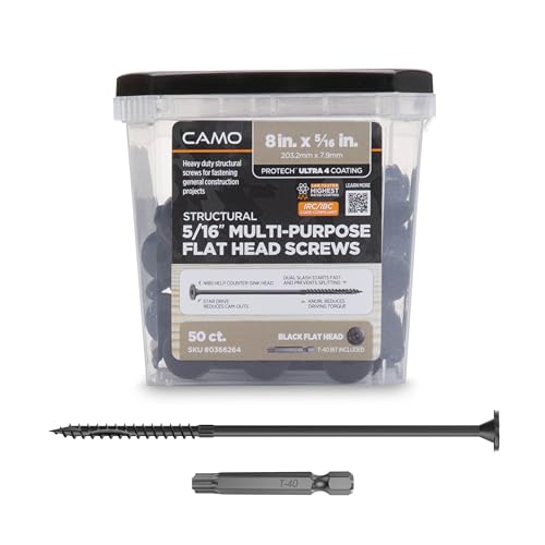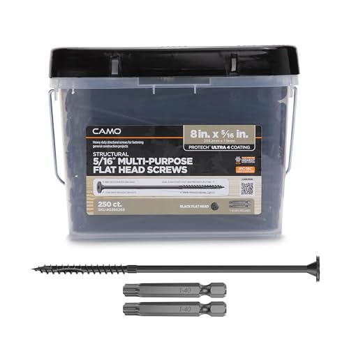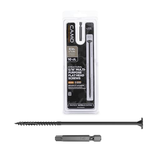 Skip pre-drilling and enjoy fast starts with CAMO Heavy-duty Multi-Purpose Flat Head Structural Screws. They start fast, hold strong and finish flush in a variety of general construction projects. They are third-party tested and certified IBC and IRC code compliant and are an ideal replacement for traditional 1/2 in. lag screws. These screws feature our industry-leading PROTECH Ultra 4-layer coating system, offering superior corrosion resistance for long-lasting connections. Use our heavy-duty multi-purpose screws for deck posts, beams, handrails, outdoor structures and other general construction projects.
